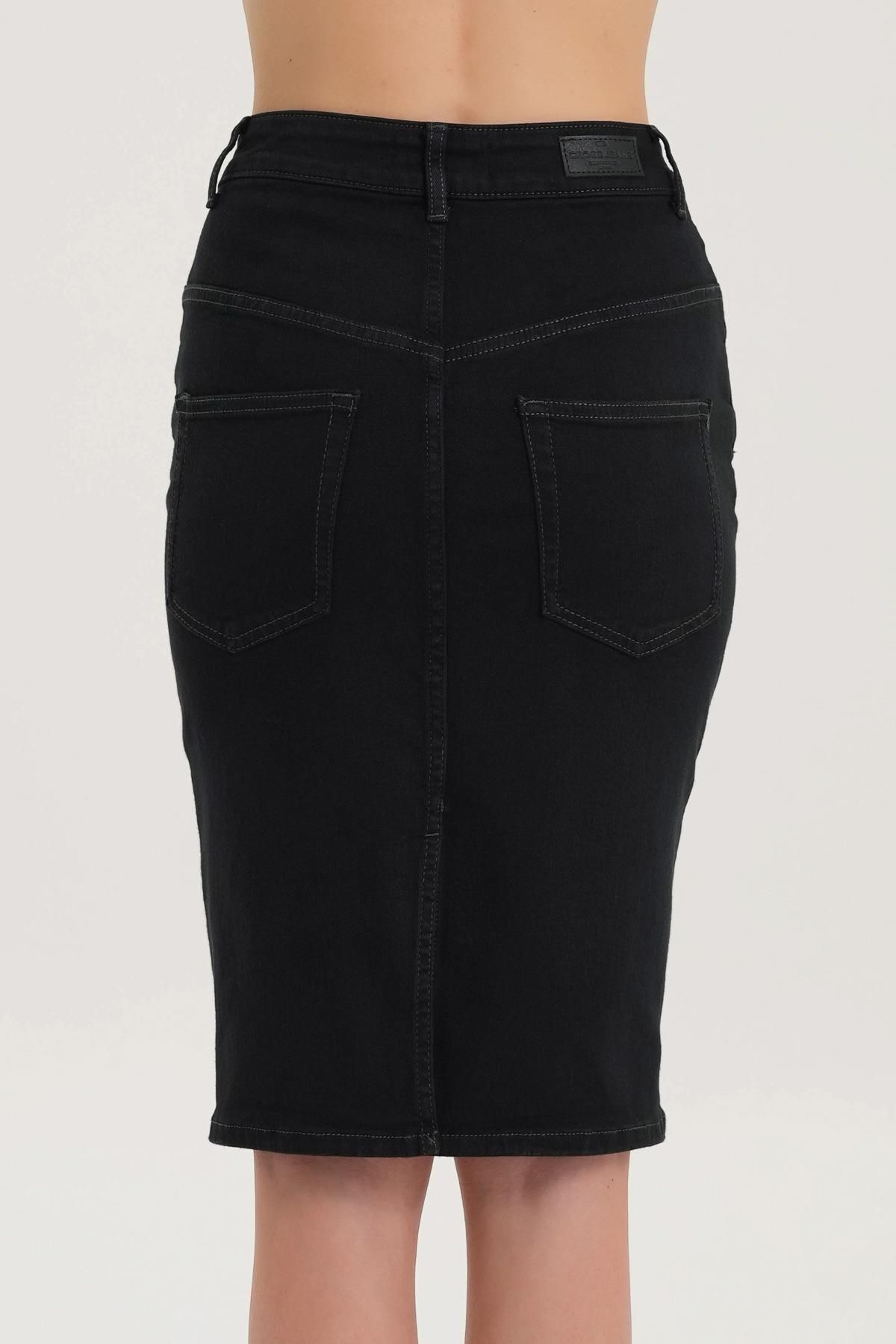 Siyah Yüksek Bel Patı Fermuarlı Yırtmaçlı Esnek Kadın Jean Etek C 4990-005