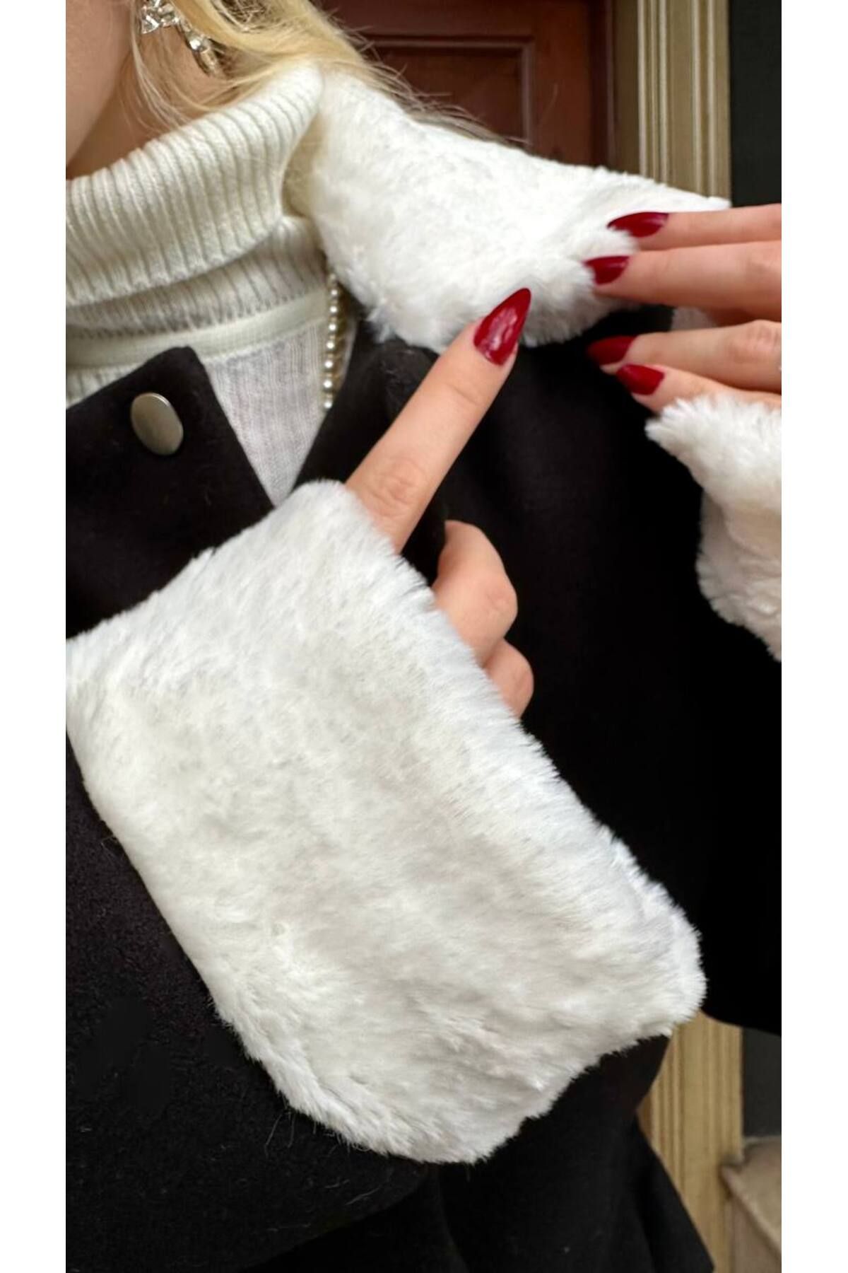 Kaşe Kumaş İçi Peluş İp Detaylı Kaban