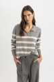 Regular Fit Polo Yaka Çizgili Basic Düz Triko Kazak A1249ax24wn