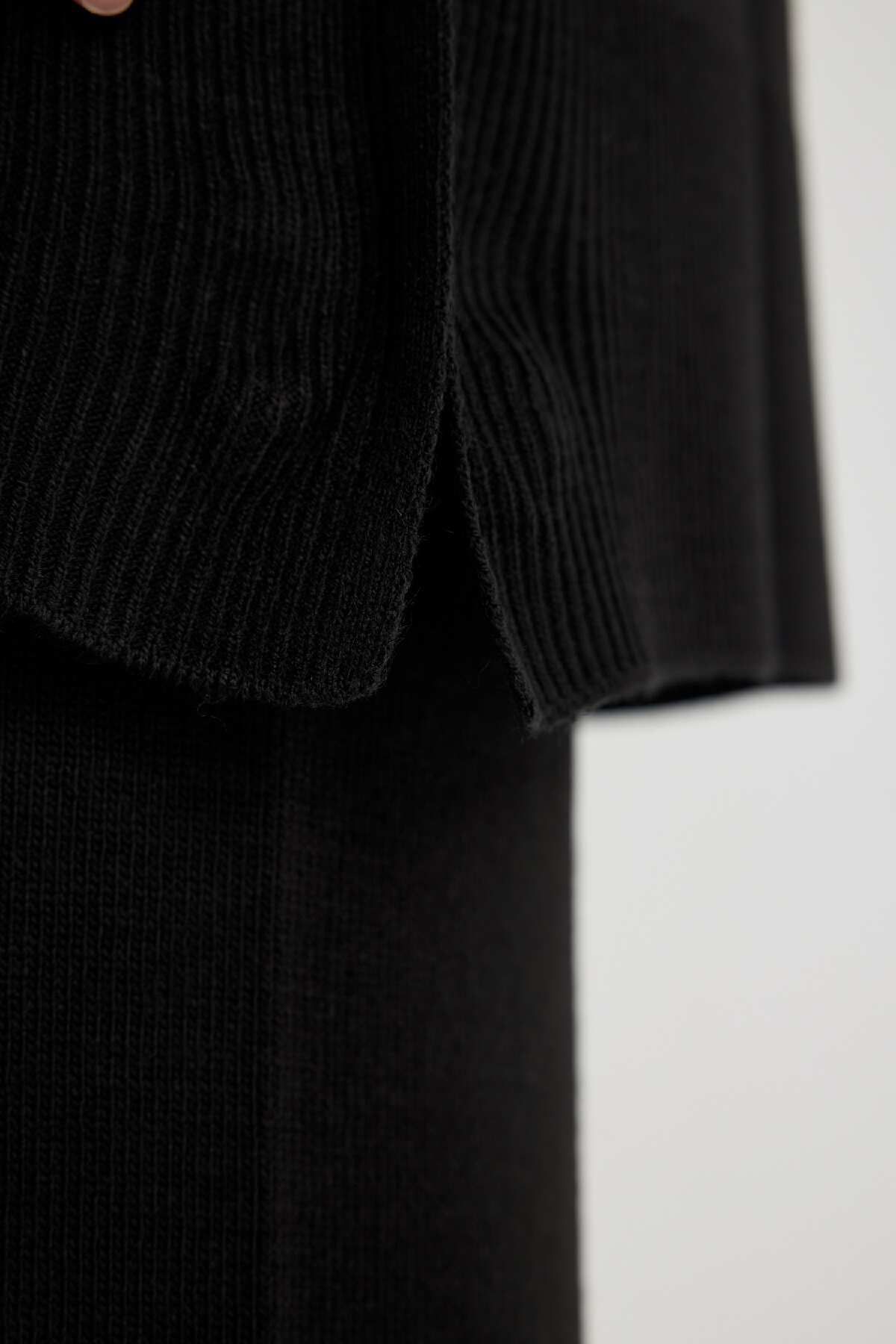 Relax Fit Çizgili Balıkçı Yaka Yırtmaçlı Triko Kazak Tunik U9892az24au