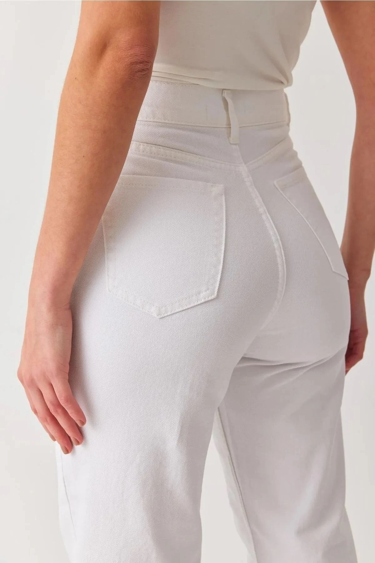Yüksek Bel Wide Leg Beyaz Palazzo Pantolon Bol Paça Jeans