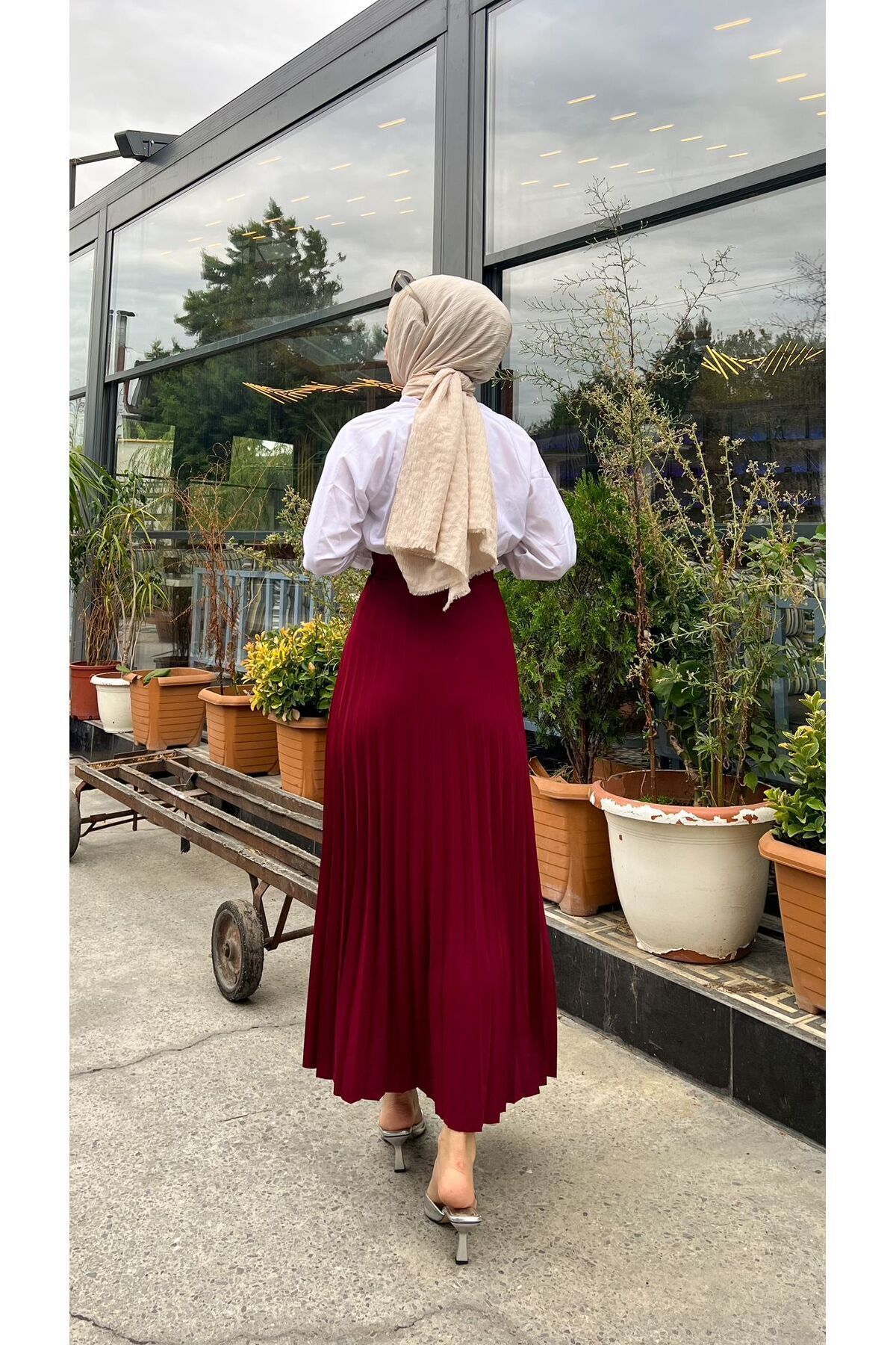 Piliseli Kloş Kalıp,(S-M-L-XL---36-48 BEDEN ARALIĞINDA), Bordo Skuba Krep Etek